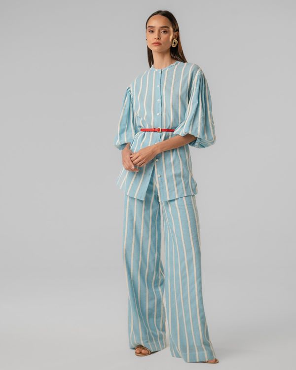 CALÇA ANALISE ALGODÃO LISTRA AZUL OFF